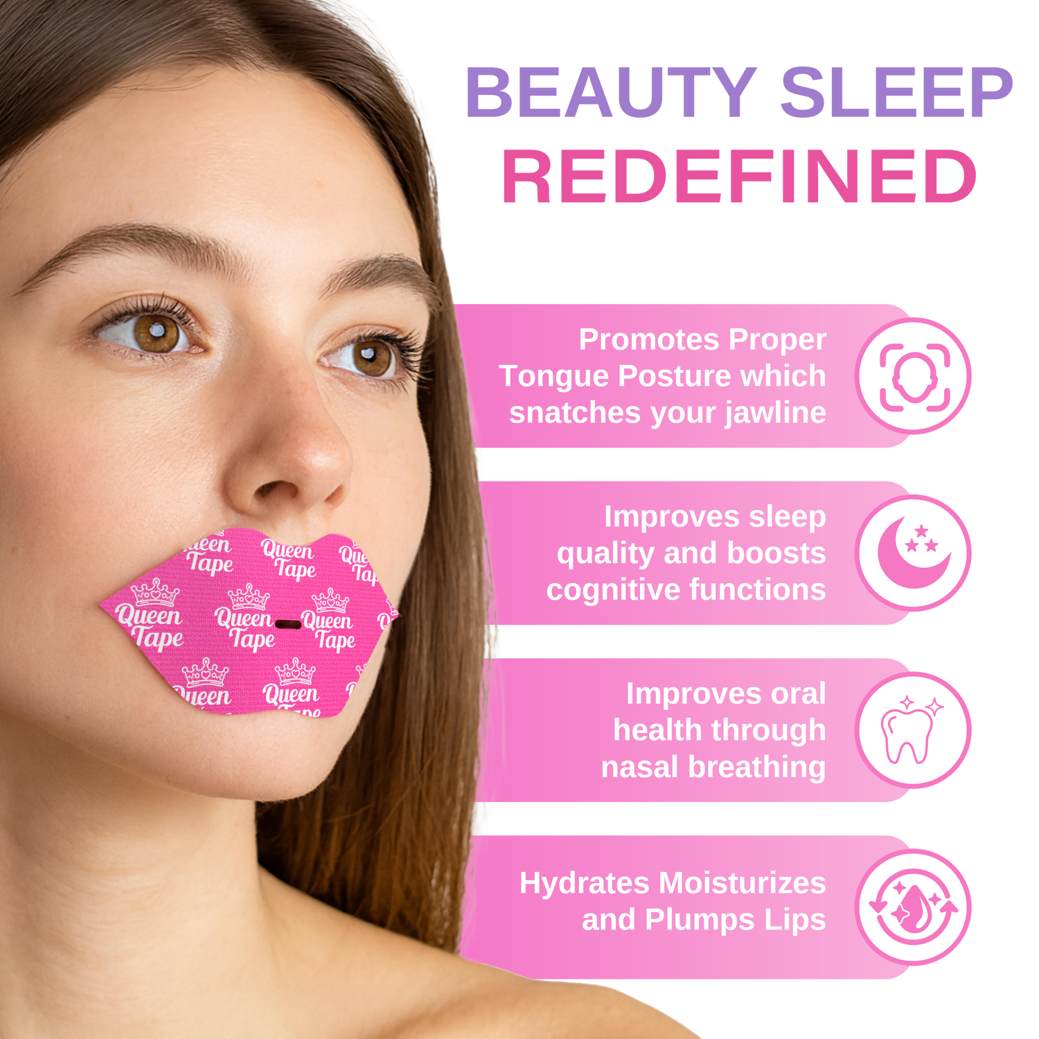 Queen Tape isn’t just for better sleep & Lips it’s for better aesthetics too. Nasal breathing can help define your jawline, improve facial structure, and get rid of the turkey gobbler. Who knew beauty sleep could be so effective?